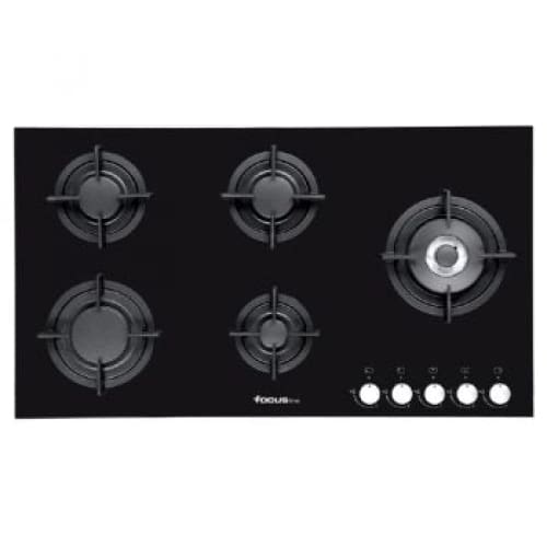 Plaque à gaz FOCUS 5 feux noir en verre (F.8179B)