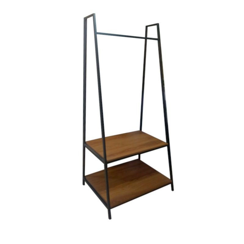 Porte-manteau de 80 cm de large en fer forgé avec des étagères en bois, meuble moderne mais et facilement déplaçable est très utile pour la maison à l’entrée ou dans les chambres.