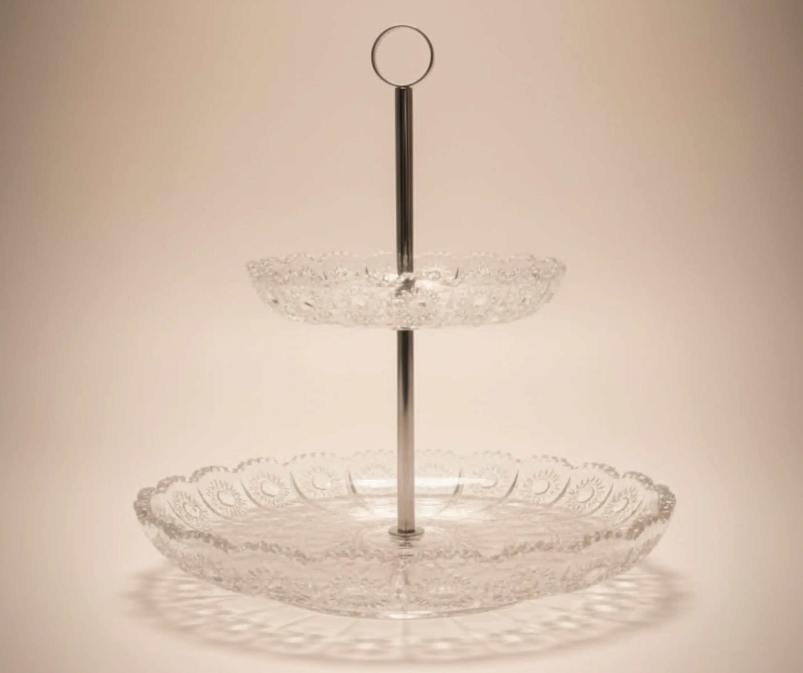 Le Présentoir Vintage à 2 niveaux incarne la beauté de la tradition du service de table, alliée à l’art du verre tchèque. Fabriqué en cristal de Bohême authentique, chaque plateau est taillé avec un motif floral ou géométrique délicat, et les bords ondulés évoquent des pétales de fleur — subtils, élégants, jamais chargés.