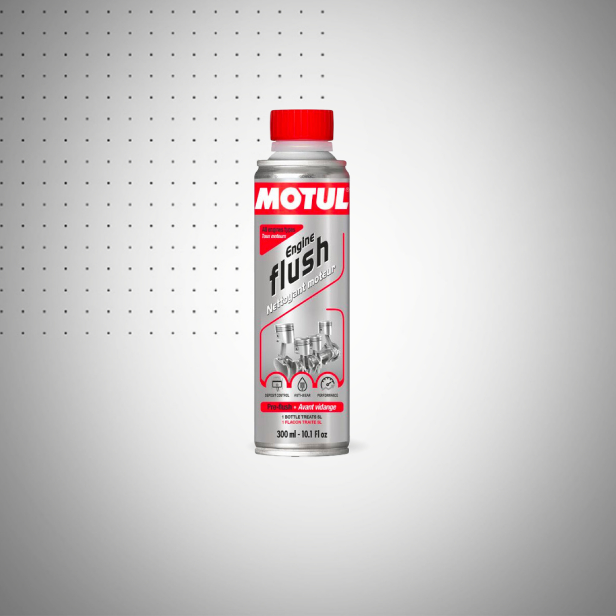 Entretenez efficacement votre moteur grâce au Motul Engine Flush, la solution de nettoyage interne à utiliser avant chaque vidange. Ce produit innovant est conçu pour nettoyer l’ensemble du circuit d’huile et éliminer les boues, résidus et impuretés qui se forment au fil des kilomètres.