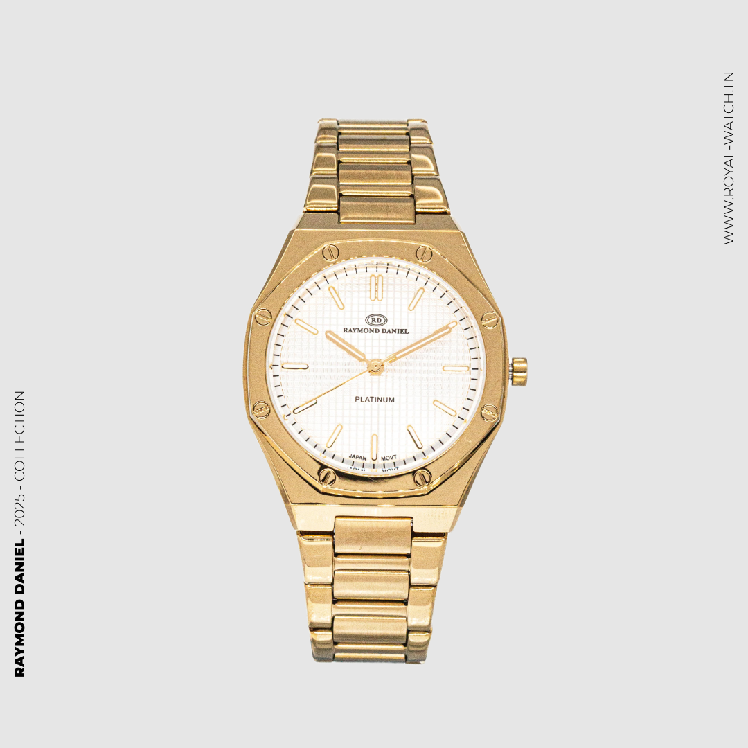 This elegant watch, model RAYMOND DANIEL, combines stylish design with functionality. Its sleek appearance makes it a versatile accessory for any occasion. The precise timekeeping and durable construction provide reliable performance. Elevate your look with this sophisticated timepiece.