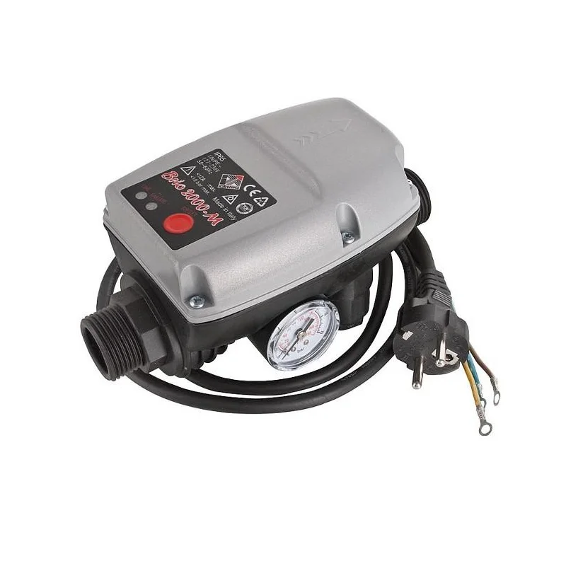 Brio 2000 avec manométre et cable Origine italien est un appareil qui permet d’automatiser la mise en marche et l’arrêt d’une électropompe, relatifs, respectivement, à la baisse de pression