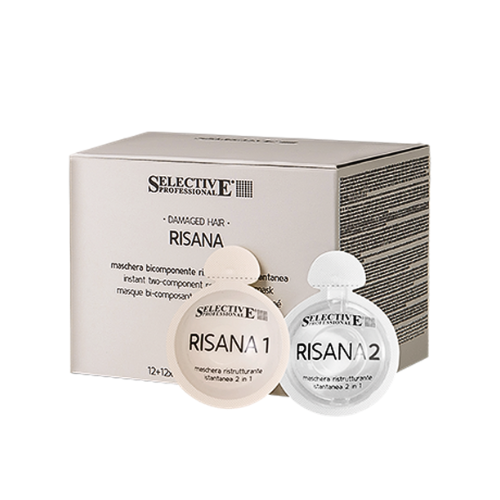 Mélanger le contenu de RISANA 1 avec RISANA 2 dans un bol et bien mélanger jusqu’à obtenir une émulsion compacte et homogène, puis répartir avec le pinceau approprié sur toutes les longueurs.