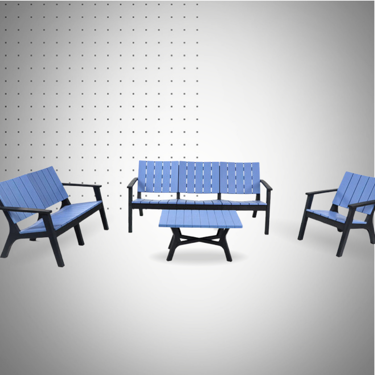 Ce salon se distingue par son design innovant en plastique effet bois, qui imite à la perfection l’apparence du bois naturel grâce à une finition bossée et un assemblage soigné. Cette touche authentique apporte du charme et une ambiance chaleureuse à vos espaces extérieurs tout en restant moderne et raffiné.