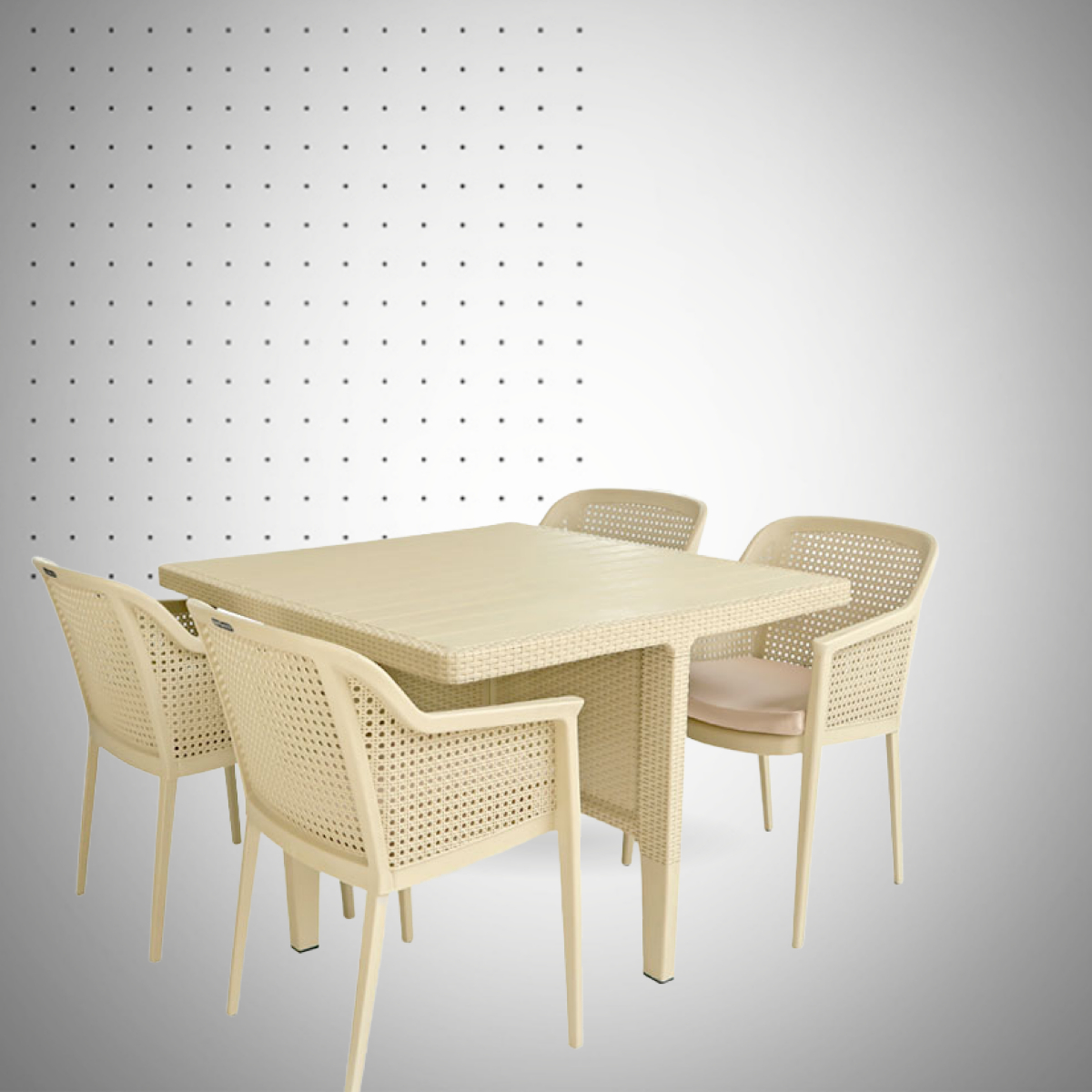 - Table Carrée de 117 cm : Solide et spacieuse, elle est renforcée par une structure métallique, idéale pour accueillir vos repas ou moments de détente en extérieur.