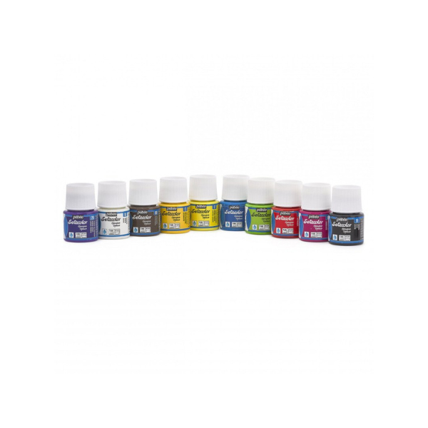Assortiment de 10 couleurs opaques, conçues pour décorer la plupart des textiles. Finition mate avec excellente résistance à la lumière.