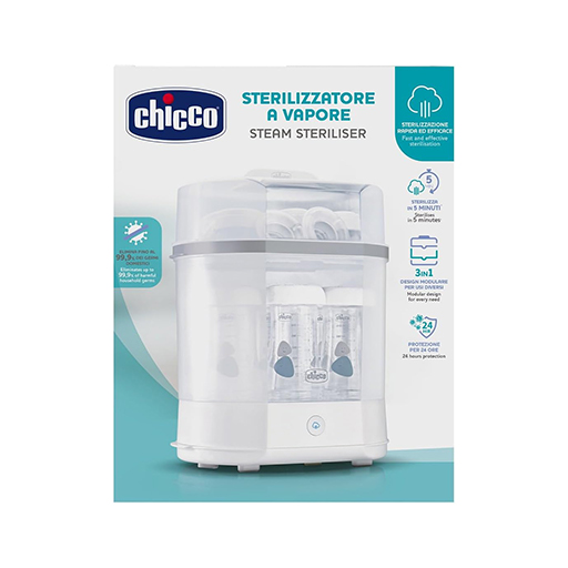 • STÉRILISATEUR NATUREL : Le stérilisateur Chicco stérilise les biberons, tire-lait et les tétines en seulement 5 minutes grâce à la vapeur naturelle, sans avoir à ajouter aucun type d’additif chimique