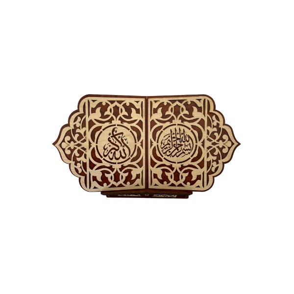 Ce porte-Coran en bois finement découpé au laser est orné de motifs arabes et de calligraphies islamiques élégantes. Il est conçu pour accueillir le livre du Saint Coran dans une position confortable pour la lecture, tout en apportant une touche spirituelle et décorative à votre intérieur.