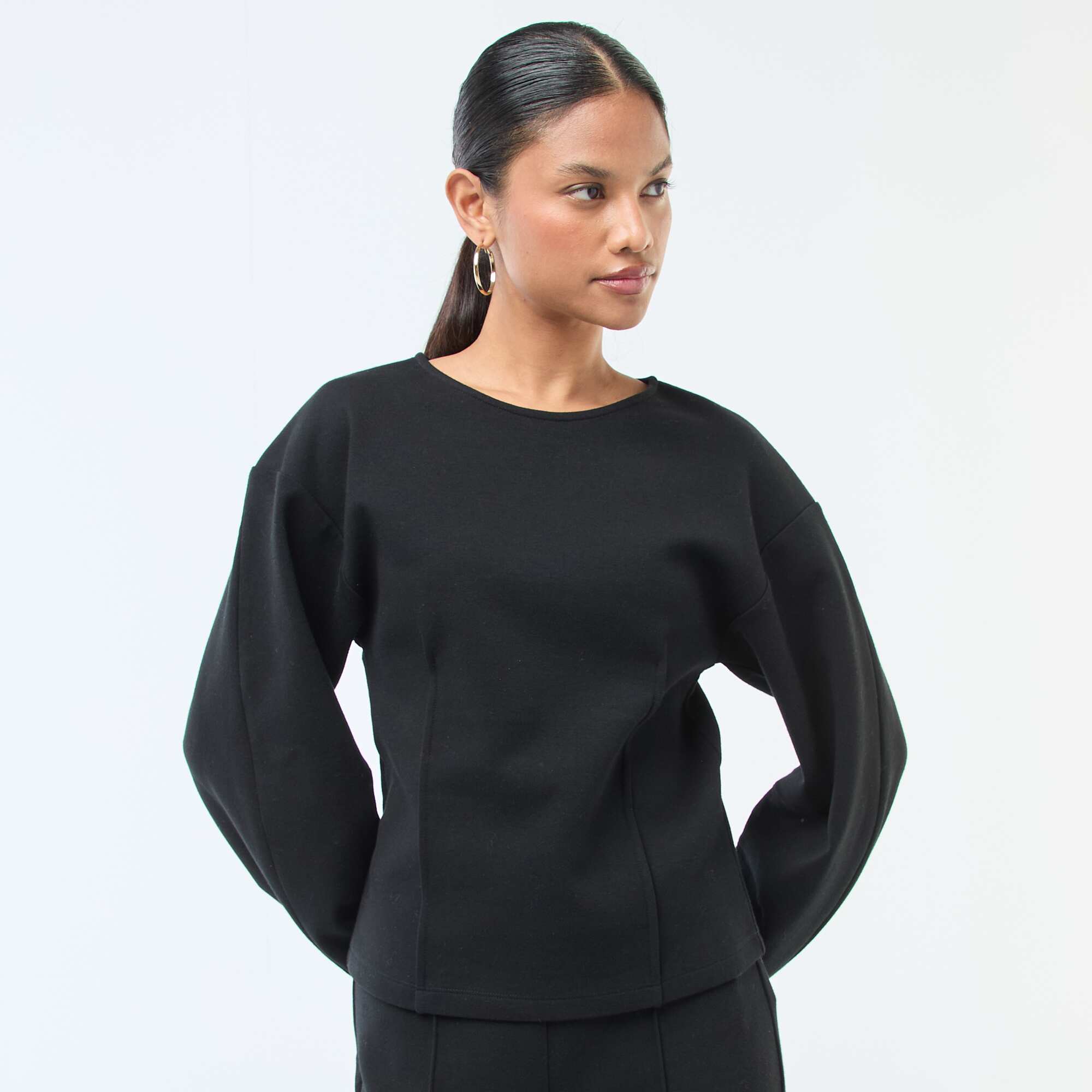 Sweat peplum à col rond NOIR