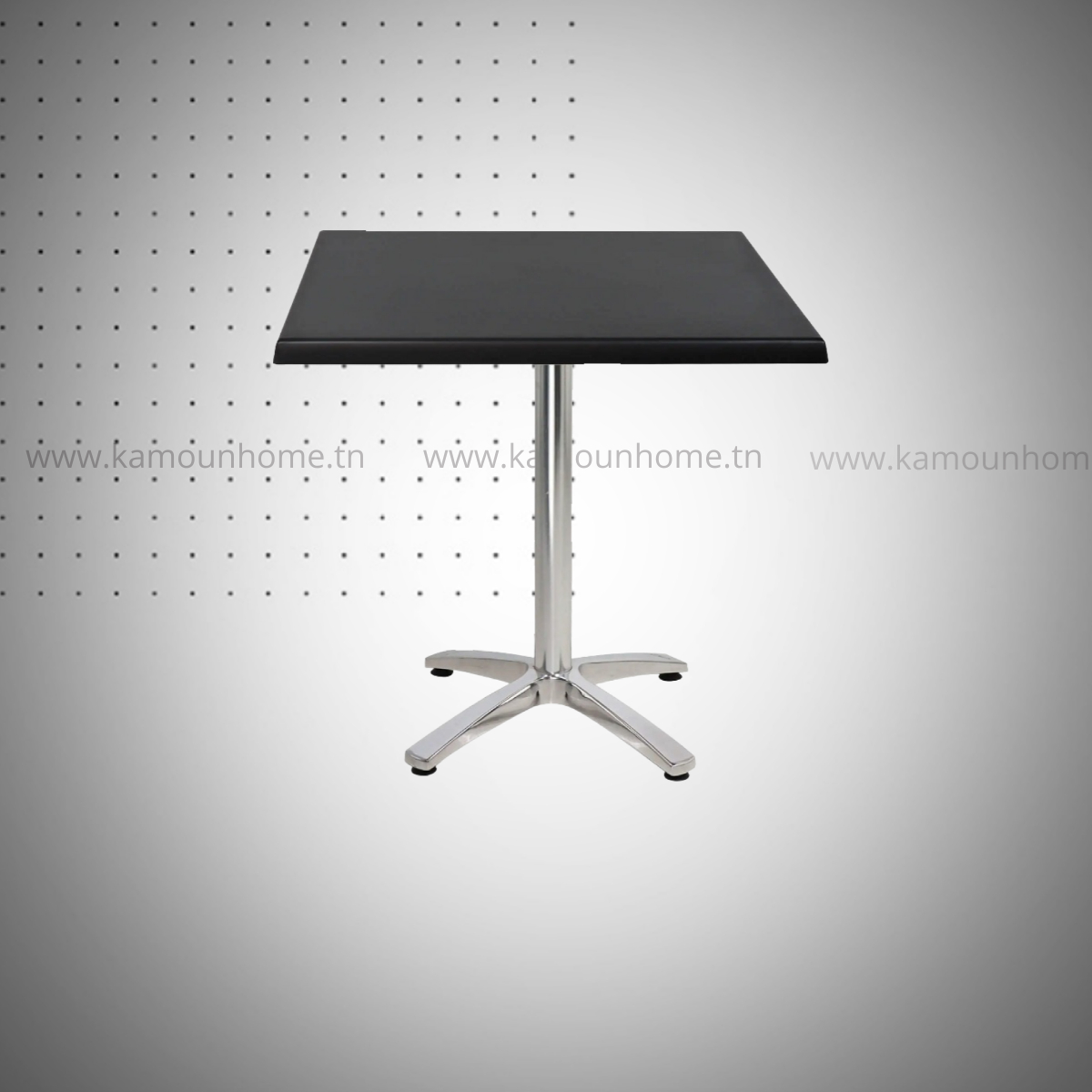 Son coloris noir apporte une touche moderne et élégante. Le plateau carré optimise l’espace, même dans les zones à fort passage. Parfaite pour cafés, terrasses, snacks ou cuisines contemporaines.