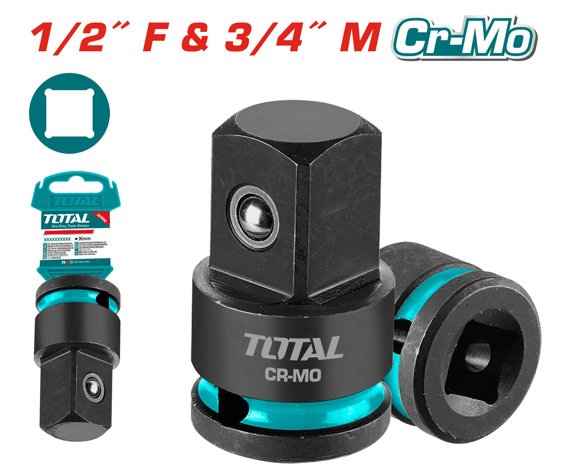 Optimisez vos interventions avec l’adaptateur douille impact TOTAL CRMO, un accessoire robuste qui transforme rapidement votre clé à choc en outil polyvalent capable d’accepter plusieurs tailles de douilles tout en résistant aux conditions de travail les plus exigeantes.
