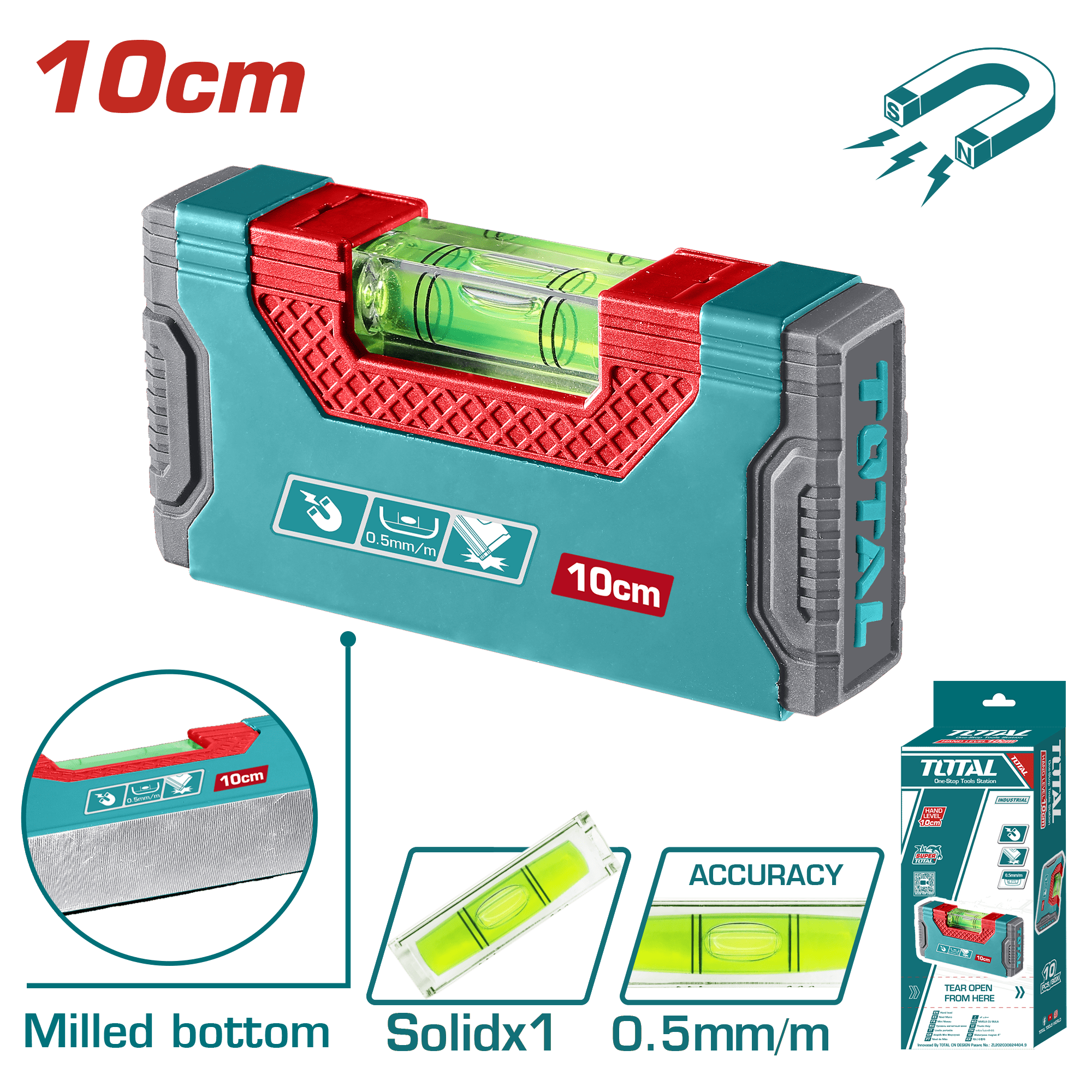 Le niveau à bulle magnétique TOTAL 10 cm vous offre des repères ultra-précis et une installation rapide, même sur surfaces métalliques, grâce à sa base aimantée et à la qualité TOTAL.