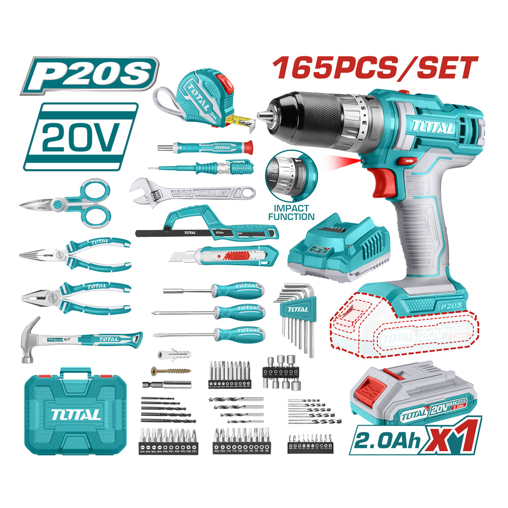 Pack Complet TOTAL 165 Pièces – Perceuse Sans Fil 20V