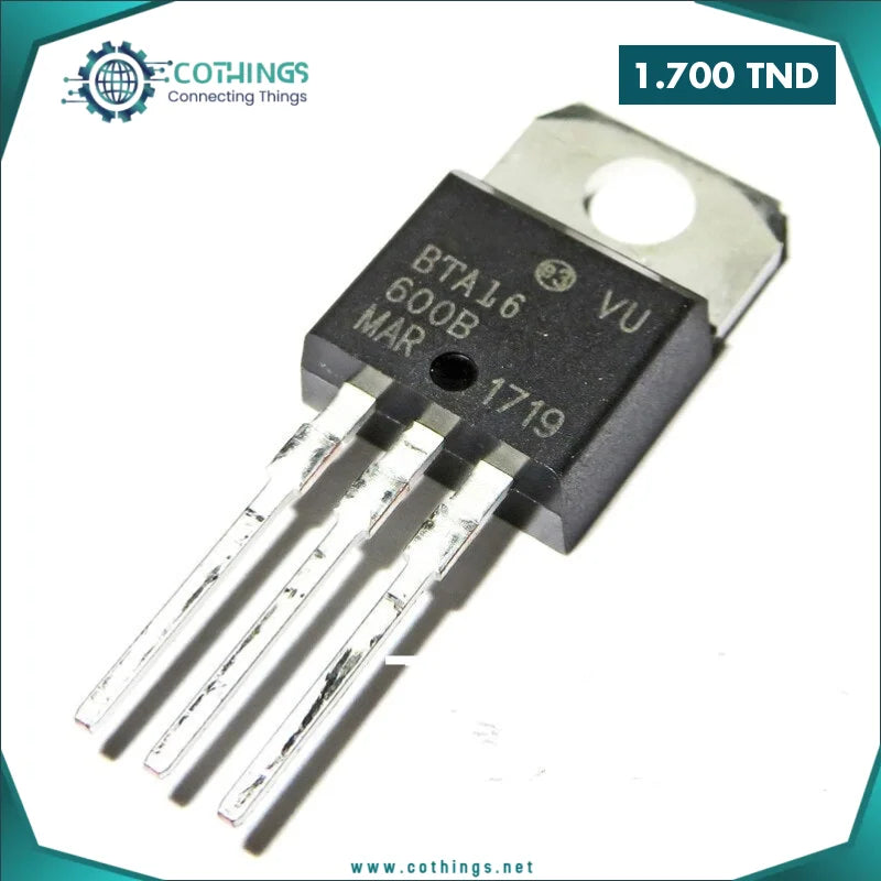Le BTA16-600B est un TRIAC THT haute puissance conçu pour le contrôle de charges AC jusqu’à 16 A et une tension maximale de 600 V. Sa languette isolée facilite le montage et assure une sécurité renforcée lors de l’installation.