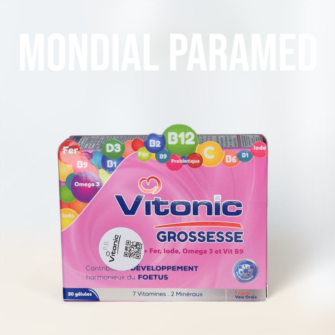 VITONIC GROSSESSE est un complément alimentaire conçu pour répondre aux besoins nutritionnels spécifiques des femmes enceintes. Sa formule complète aide à maintenir la vitalité, réduire la fatigue et pallier certaines carences en vitamines essentielles à cette période. Il contribue également au développement harmonieux du fœtus, favorisant ainsi une grossesse en toute sérénité.